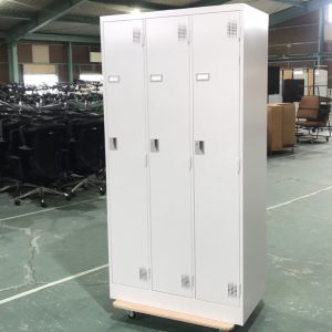有名メーカーのOEMも手掛ける豊国工業さんの3人用ロッカー。